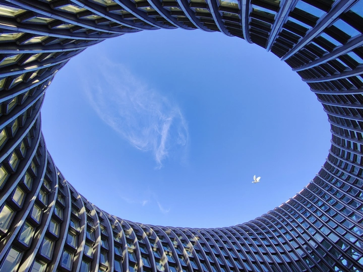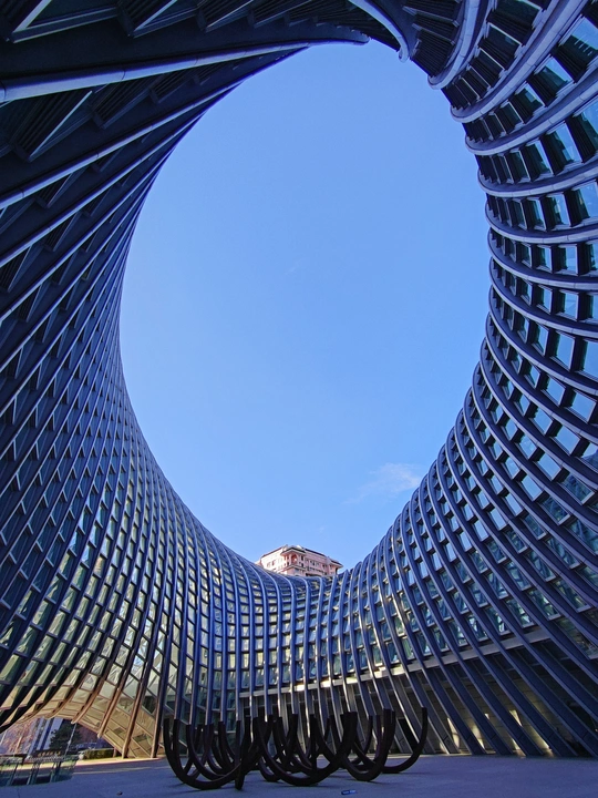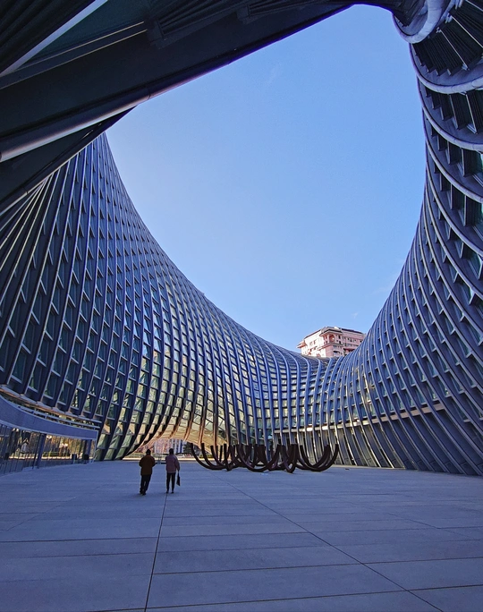 钢架结构的建筑设计在光影效果中非常具有有张力和冲击力。