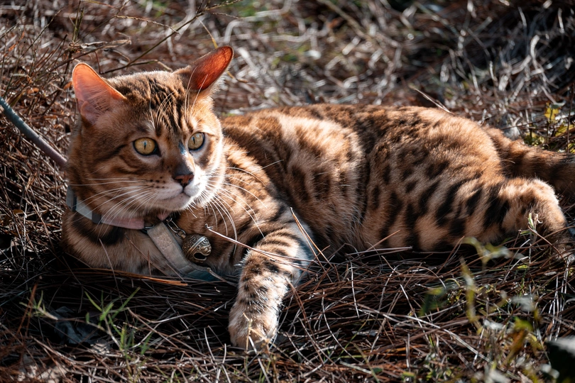 闲游汤湖公园,偶遇一只豹猫,应为家养的。