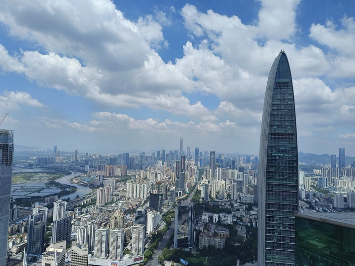 可以看到一半深圳,一半香港。远处可以看到福田南山。