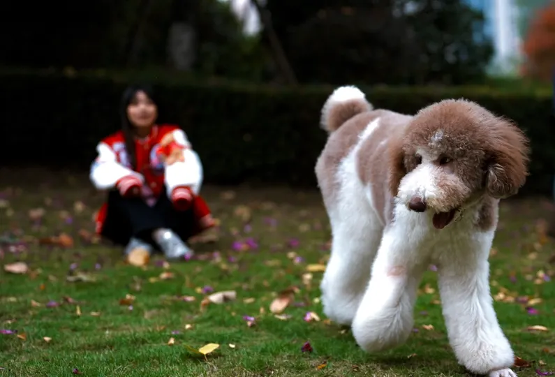 这是一只七个月大的贵宾很可爱很活泼