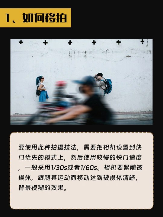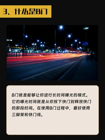 1、如何移拍 要使用此种拍摄技法,需要把相机设置到快门优先的模式上,然后使用较慢的快门速度,一般采用1/30s或者1/60s。相机要紧随被摄体,跟随其运动而移动达到被摄体清晰,背景模糊的效果。 2、如何产生星芒效果 要想使灯光产生星星的效果,那么摄影者就需要使用小光圈来进行曝光,光圈越小,效果越明显。 3、什么是B门 B门就是能够让你进行长时间曝光的模式。它的曝光时间就是从你按下快门到释放快门的那段时间。在使用B门过程中,最好使用三脚架和快门线。 4、如何设置地平线 一般拍摄草原等风景时,地平线都安排在画面的三分之一处。如果地平线在画面下方三分之一处时,则体现大海的悠远;如果在上方三分之一处时,则表现大海的博大情怀。 以上就是有关于冷门的拍摄方法了,都来看看你了解几个~ 关注我,了解更多摄影知识,让摄影简单一点。