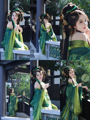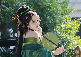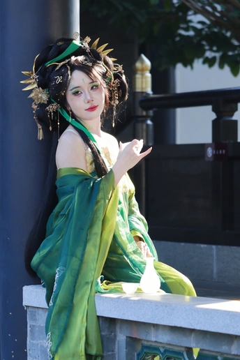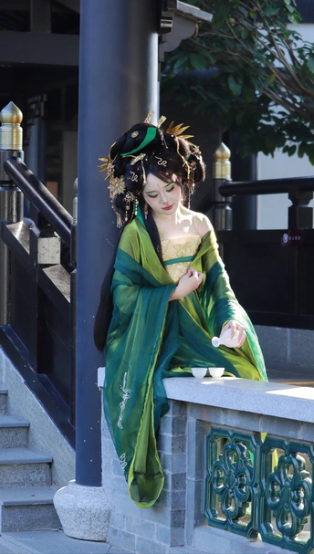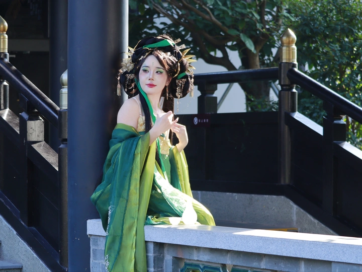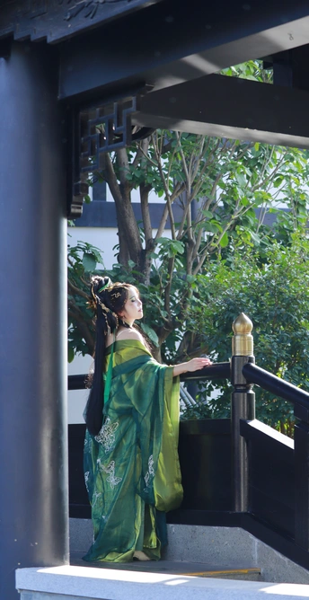 丽人依栏,凝眸远望,古风古韵,尽在此刻。