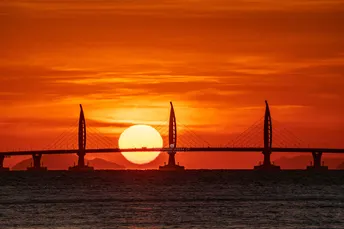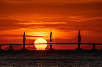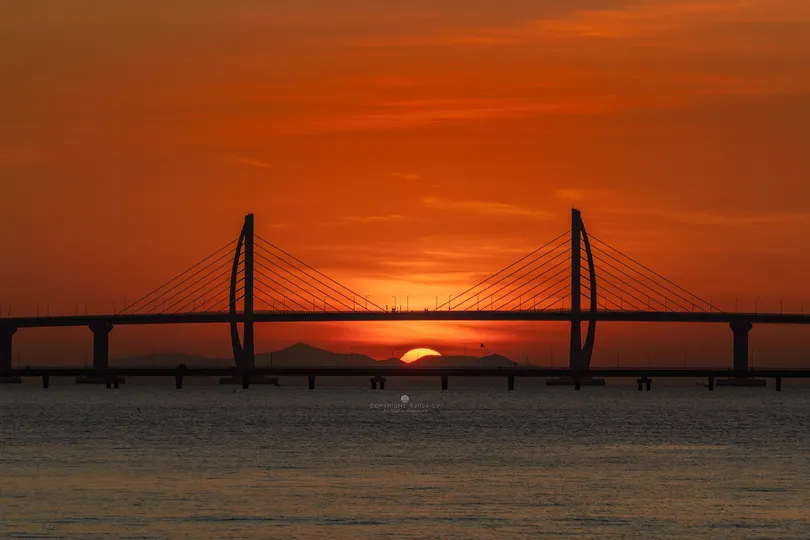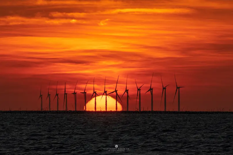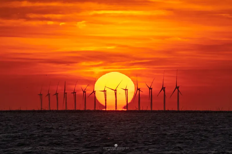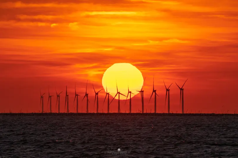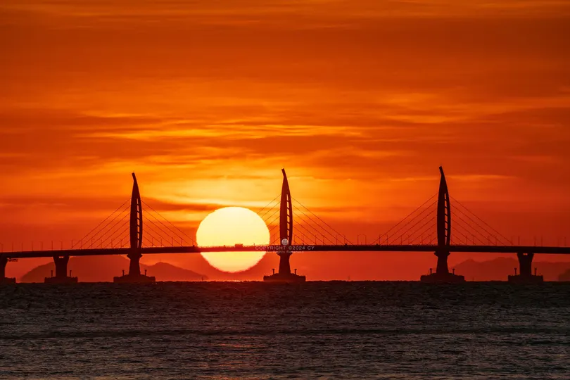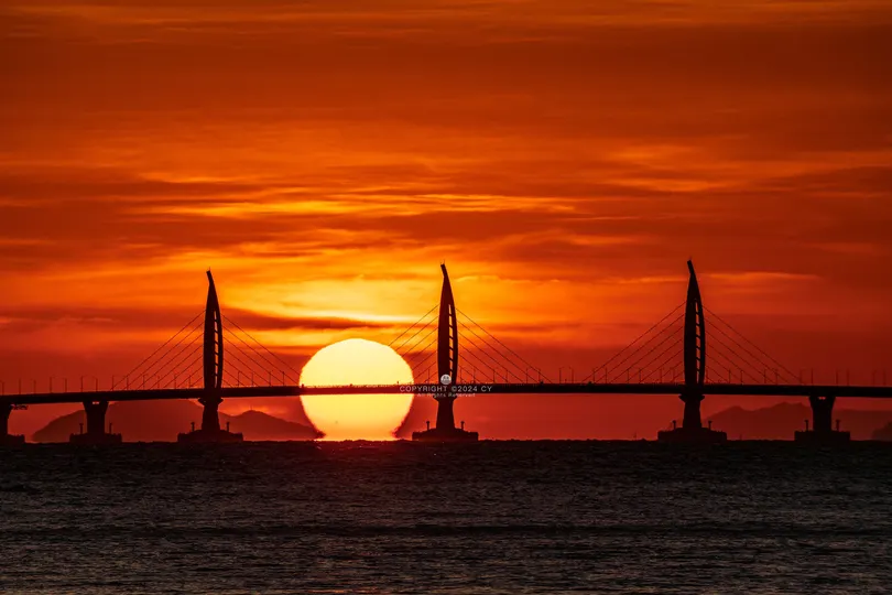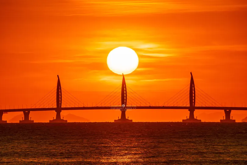 欧米茄错觉是由阳光在水面上方的温暖空气中折射产生的。从光学角度来看,首都欧米茄的脚实际上是其上方太阳区域的倒置图像。虽然有些罕见,但地球大气层引起的光学效应会使地平线附近的遥远物体——包括太阳和月球—看起来很不寻常。 拍摄于:珠海南水海上风车,珠海海豚塔,珠海风帆塔 设备:A7R3,腾龙150-500,索尼720 F4