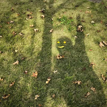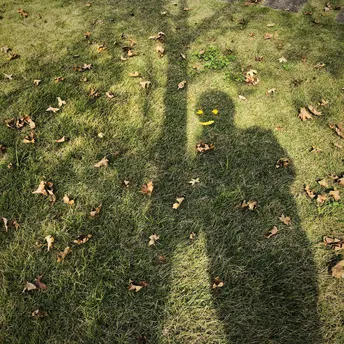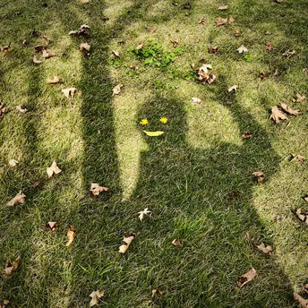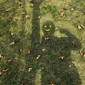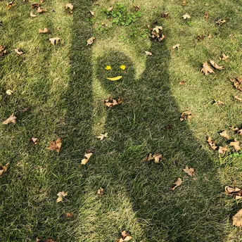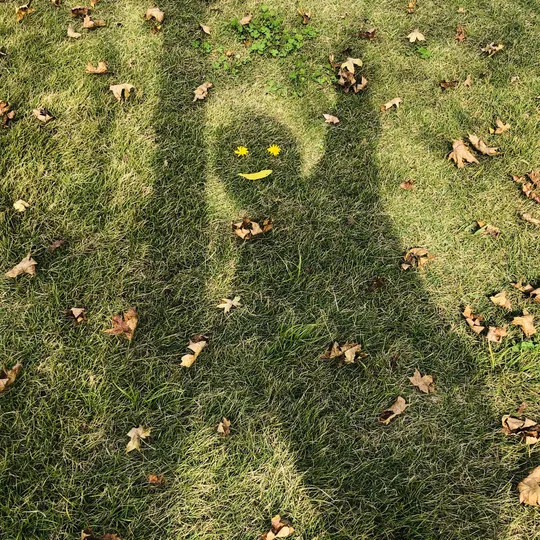 立冬前一天,阳光明媚,难得好天气,索性来到路边寻拍。秋叶满地,树影斑驳,真是不要太美,咔嚓咔嚓拍起来,和树的影子合个影吧,和晚秋合个影吧!看到被光照亮的落叶,突发奇想,用落叶或者野花给自己的影子加上眼睛和嘴,哈哈?,果真多了几分生机和趣味??