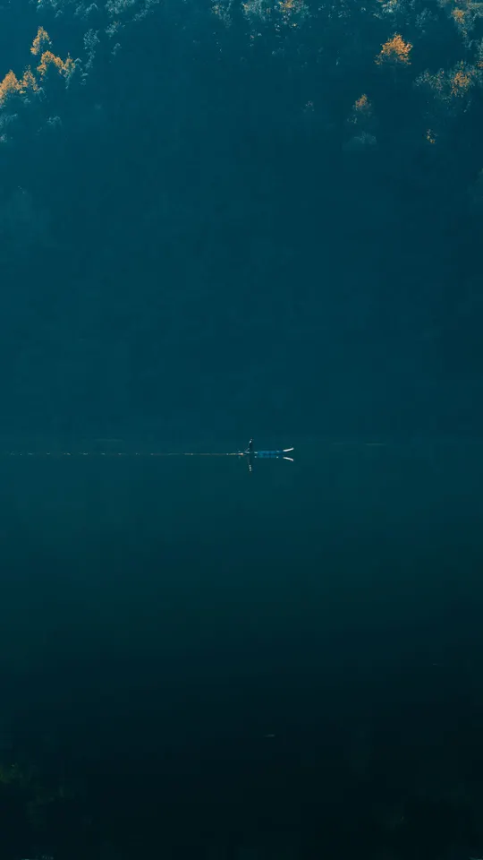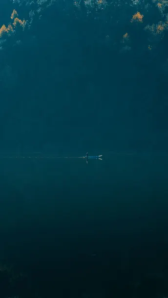 静谧江面,一叶孤舟默默前行。划到了深秋中,划到了我的心里。