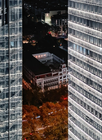 夜登屋顶,穿过光亮的摩天楼窥探城市的缝隙