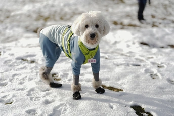 爬山龙华山,遇到一只叫赵柒柒的狗狗,跟主人一起爬上了山,在雪地撒欢。
