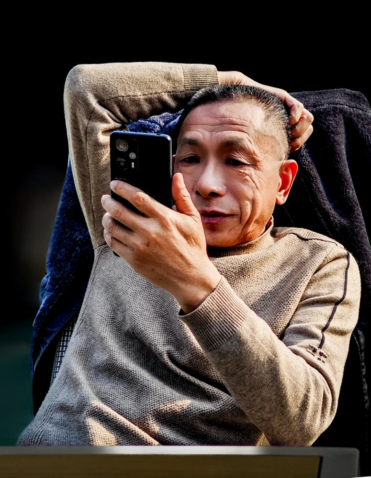 在冬日里一个温暖如春的下午,给寒冷的季节带来了一抹难得的暖意。一位悠闲的人坐在靠背椅上,享受着这难得的暖阳时光。 他拿起手机,继续浏览着未完的信息和故事,欣赏着这片被阳光染得金黄的天地。洒下斑驳的光影,与椅子上晒着的外套形成了一幅温馨而和谐的画面。