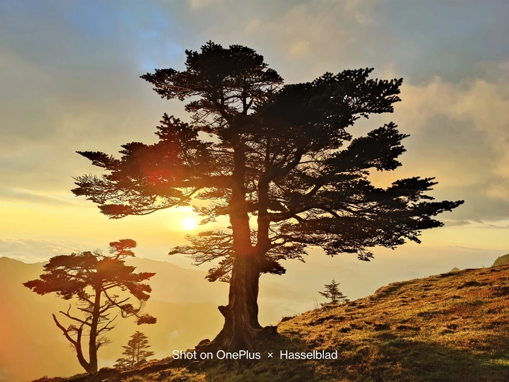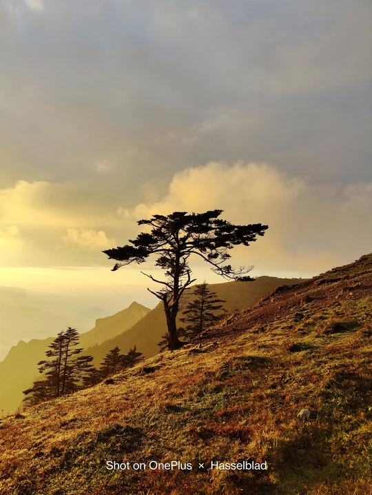 日出时刻高山迎客松