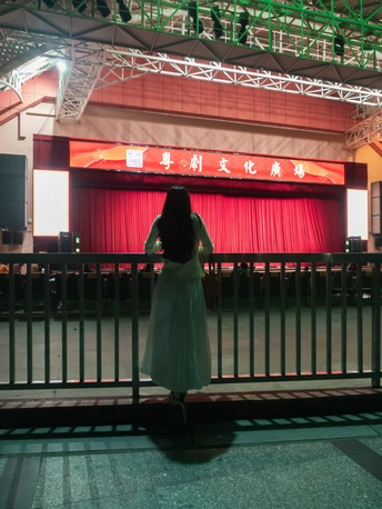 在这张照片中,色彩使用上较为大胆,舞台的红色幕布与主体的白色裙子形成了强烈的对比,营造出了一种温暖和期待的氛围。然而,背景的绿色灯光与舞台色调的搭配略显冲突,建议在拍摄时注意整体现效果,确保色彩协调。 光影方面,光线主要来自舞台,这使得主体略显阴暗,光影应用不足。可以考虑在拍摄时选择更合适的拍摄角度,以便让光线更好地照亮主体,提高细节表现。 构图方面,主体处于画面的中心位置,但没有充分利用构图原则,缺乏动态感和层次感。可以尝试运用三分法或黄金分割,将主体略微偏离中心,以增强视觉冲击力。 对于后期处理,照片的对比度和饱和度可进一步提升,以强化视觉效果,并在不失真的前提下增强主体的表现力,避免模糊的部分影响整体体验。 主题原创性虽然展现了一定的情感,但缺乏更深层次的创意思考。建议考虑将拍摄主题与背景故事结合,使其更具吸引力。 在情感共鸣方面,虽然主体的姿态传达了一种期待的情绪,但故事性不强,可以考虑通过细节来增强情感表达。 最后,思想深度较为欠缺,这张照片的表现较为表面,建议在主题的选择上深入挖掘,寻找能引发观者深思的角度。