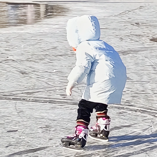 冬日呼和浩特市,湖面已被冰雪封住。一美丽的小宝贝在冰雪湖面上自由自在地滑行。
