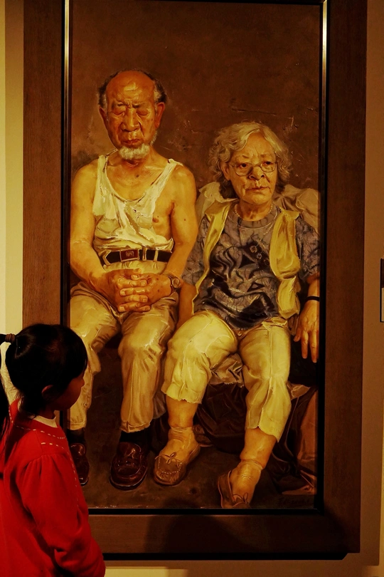 忻东旺,一个画出历史沧桑的艺术家 我不懂画。看画展,于我而言,就是一件附庸风雅的事。然而,昨日观看忻东旺的画,听他夫人张老师的讲解,我竟沉入画中,看到了世态的悲凉,人间的变迁。 画中变形的人像,却是你看到的那些人物的情绪表象。图三《形象设计师》是一个进城的农二代,在时代的浪潮中刻意装饰自己,却刻画不了自己注定的人生。图六《金婚》,写意了多少夫妻的人生合伙与陌路。用刀刮助画的图四,刻录了有故事的粗砺生活。 不幸,画家英年早逝。他留下的画作,却成为艺术重典,亦是历史的视觉记载。 特此以黑卡相机随记。 亨利 2024/12/7 参加中华艺术宫/上海美术馆“审美是心灵的感动——忻东旺的艺术人生导赏活动”后记