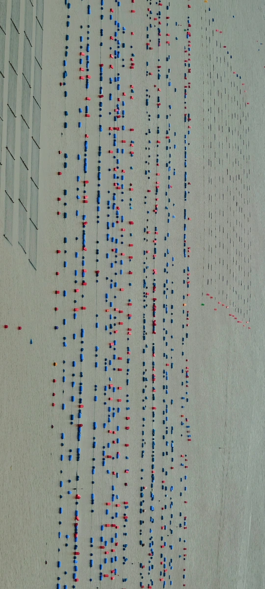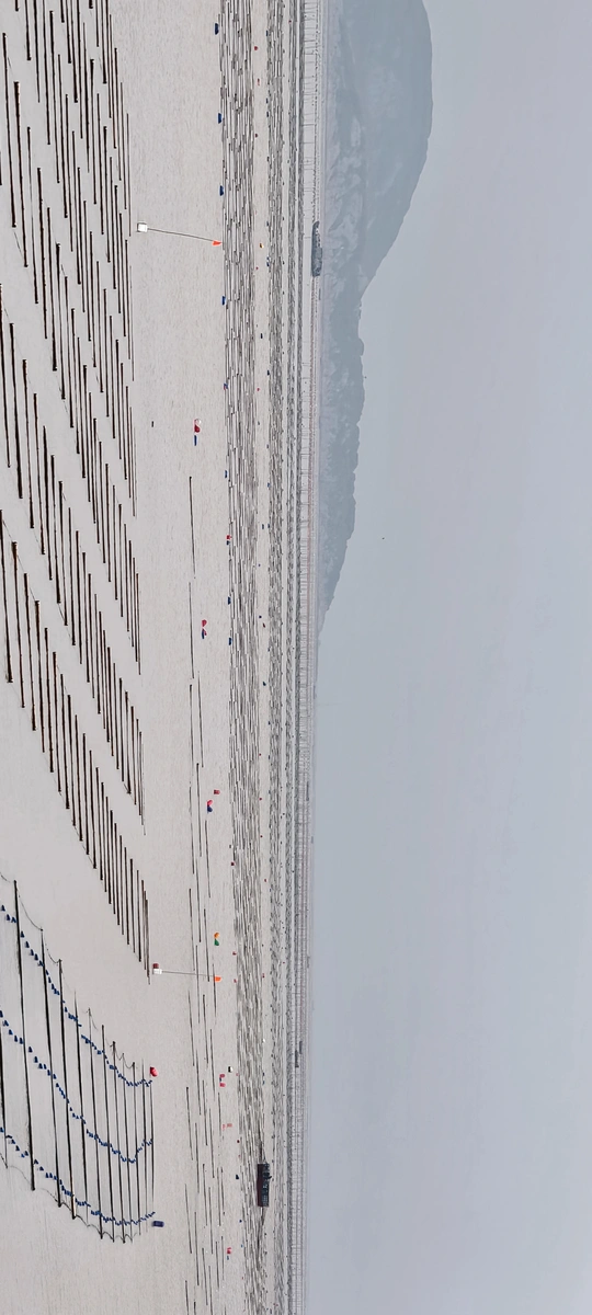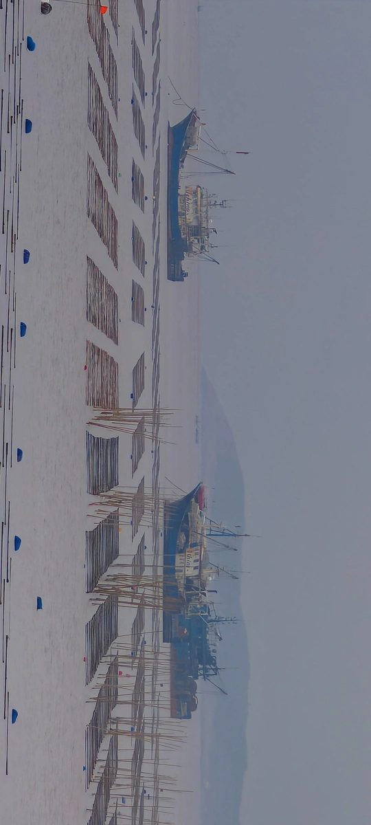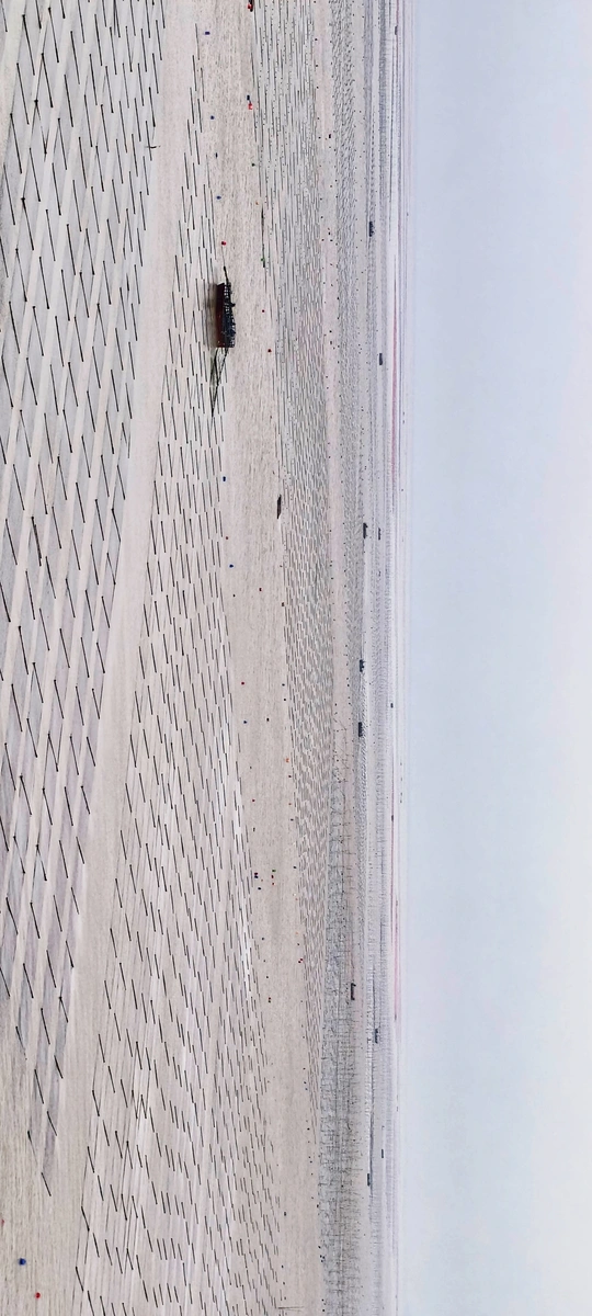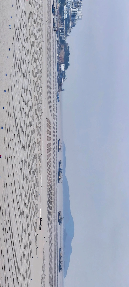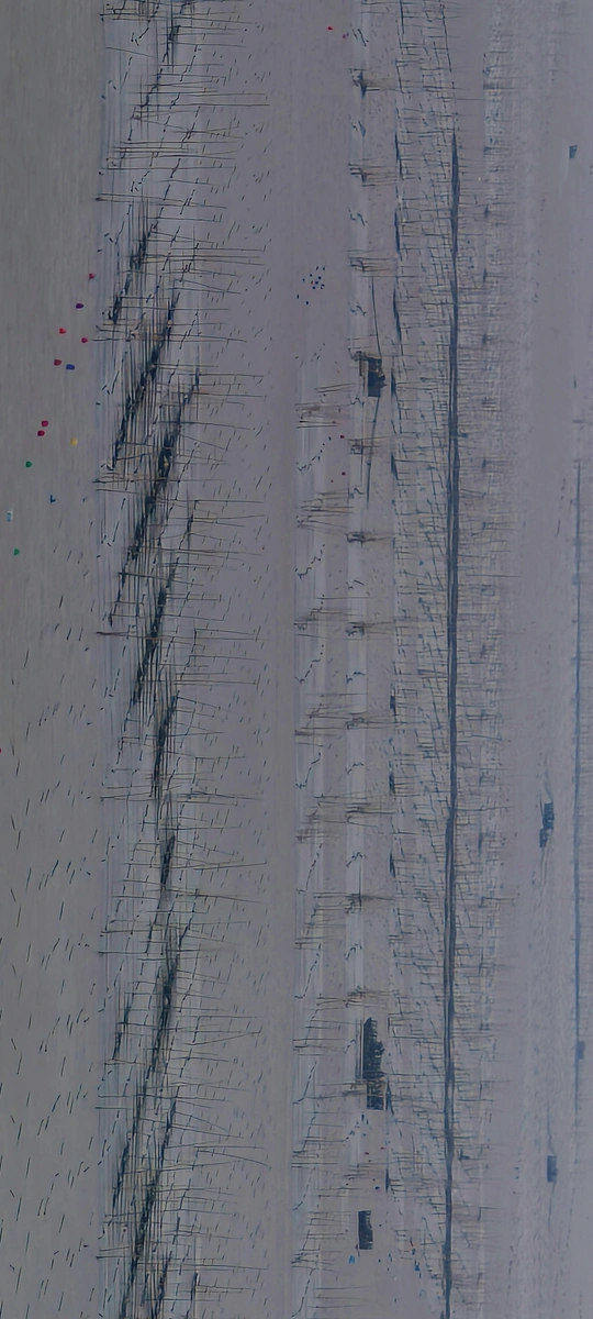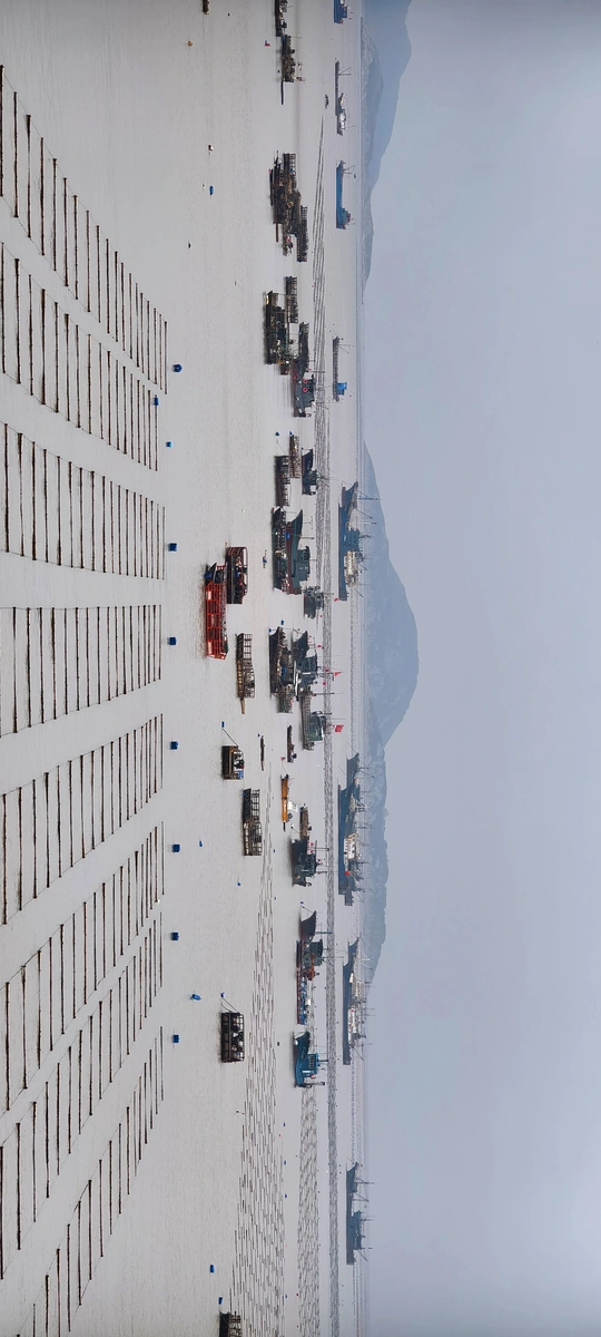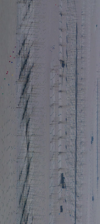 在霞浦内海滩涂养殖基地,穿梭的船只、成千上万竹杆围成的水道,构成一幅自然与人文完美结合的画卷。