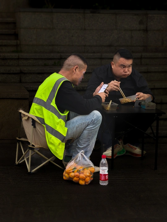 下班回来,走出地铁口,看到黄昏的街道上,几个路人在吃饭,看到他们狼吞苦咽的样子,生活,真的不容易。