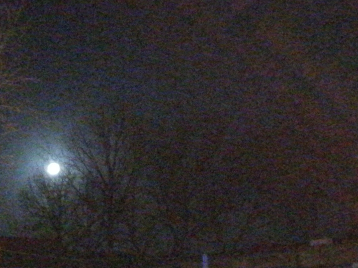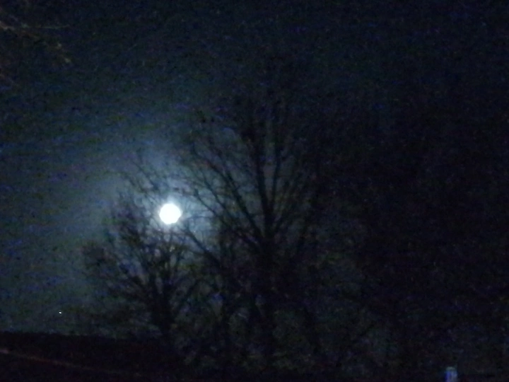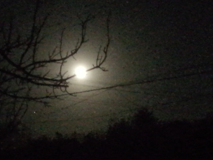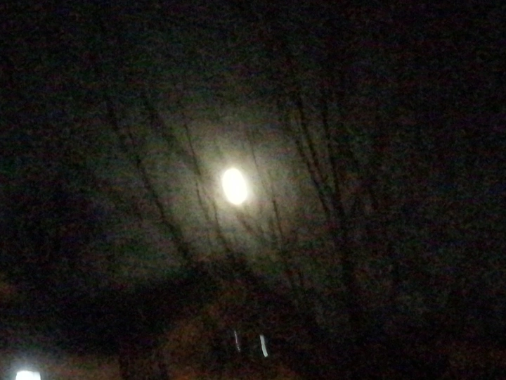 天快要亮的时候,月亮爬上了树梢、这景色很有诗意吧?美极了!