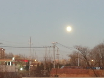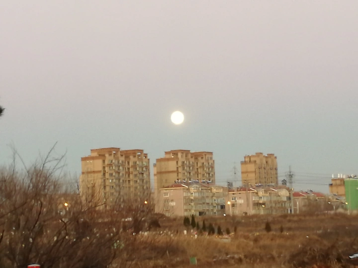 今天是2024年冬月十五日,傍晚下班回家的时候、经过黄金阁的时候,偶尔抬头一看、发现月亮已经挂在了半空中,在楼房、树木和天空的映衬下,呈现出一幅绝美的画面!我就赶紧拿起手机把它拍了下来!