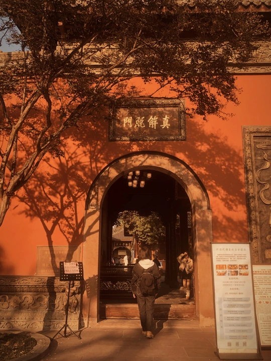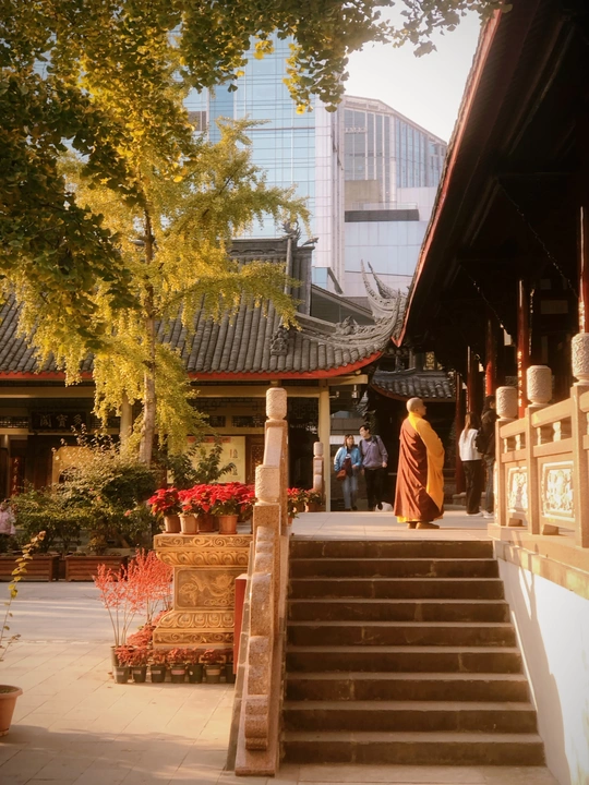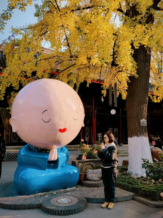 大慈寺是成都最古老的寺庙,有着1600多年的建寺历史,被誉为震旦第一丛林。寺庙内部遍植银杏树,到了11月底银杏染成金黄,正是游古寺赏银杏的好时节。一株百年银杏下坐着的网红小沙弥。