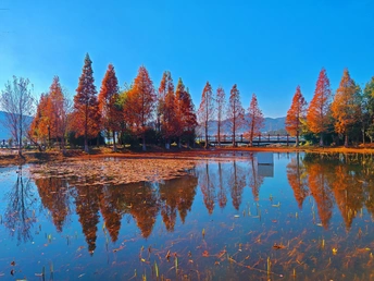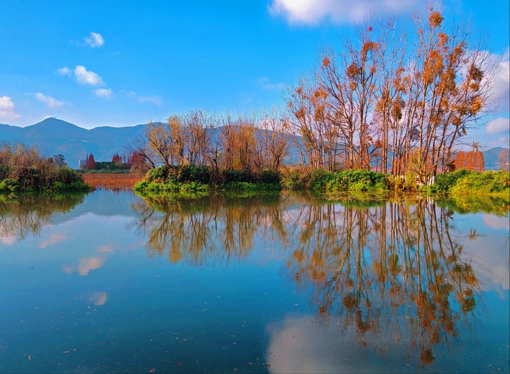 云南昆明一个四季如春与自然和谐共处的城市,不需要滤镜的冬日蓝是城市的冬日背景色,映衬的滇池湖畔湿地里色彩斑斓的各色植株,如油画般丰富细腻。