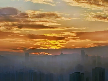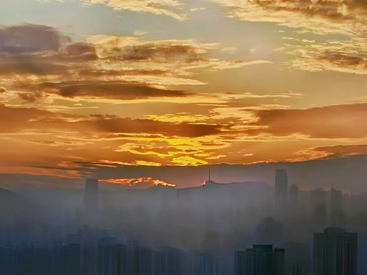 🦍作品采集 因工来到山城雾都,遇到连雨阴天,今天清早六点起床,发现有放晴迹象,很快爬楼上30层平台,看到短暂的朝霞,随用手机抓拍。 🦝作品陈述 雾都的早晨登高远这眺,不免会看到雾气蒙蒙;浓烈时,如同流云一样;楼宇若隐若现,山顶和空中朝霞呈橙红色在云层间突显,缤纷烂烂漫。 🦡总结 随时观察和掌握动向,找到视界开扩的场景,欣赏中收取素材。1/1