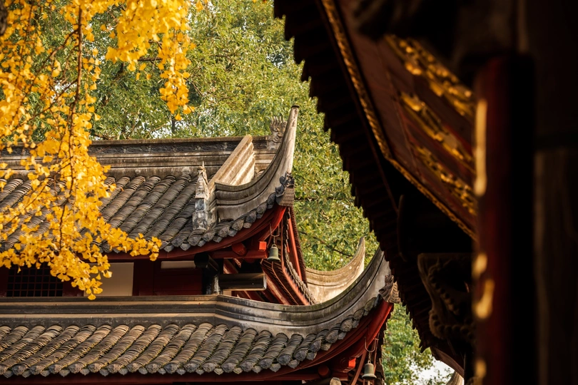 文殊院的暮秋,阳光普照,温暖养眼,明黄的银杏将古建筑衬托的更加灵动。