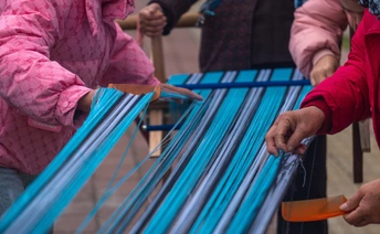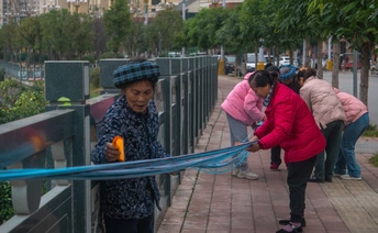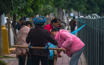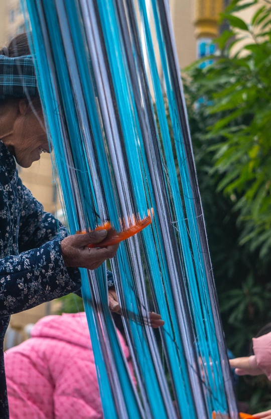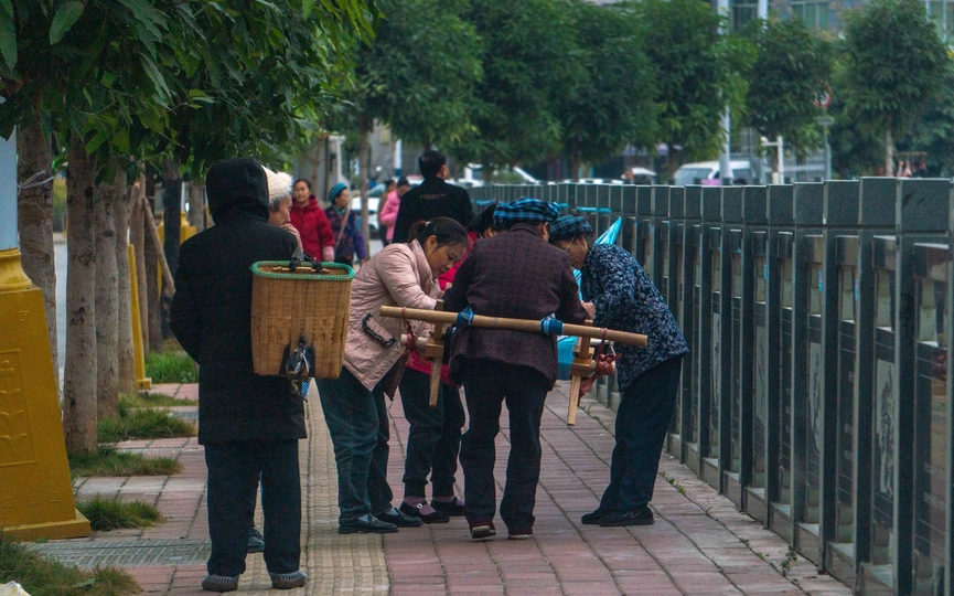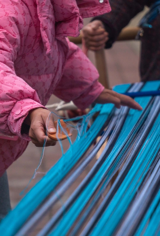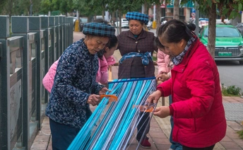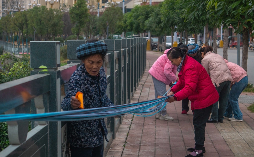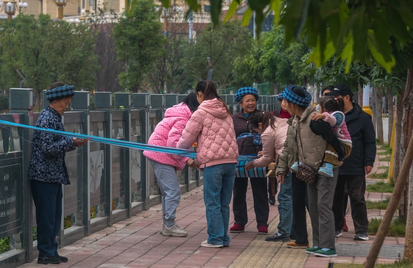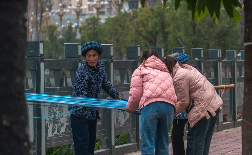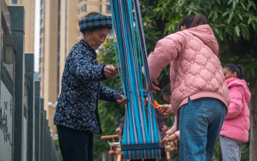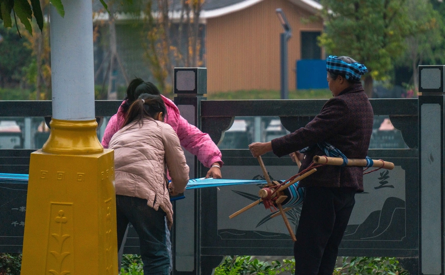 2024年12月19日,贵州省黔西南布依族苗族自治州望谟县县城,布依族妇女相约王母河畔的诗词长廊,完成布依族土布制作中的梳纱工艺。街头民族文化的美丽自然呈现出小城冬日独特的民族风情。 望谟县是全国布依族人口最聚集的少数民族地区,被誉为“布依圣境”。传统的布依族文化和习俗在这里得到较好的传承和自然呈现。