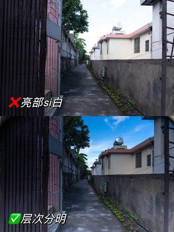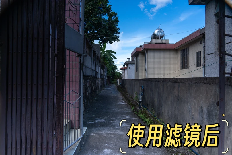 在拍摄遇到这种大光比的场景,想要突出高光部分那么暗部就会死黑,想拍清楚暗部高光部分又过曝了。 除了可以使用包围曝光的模式,还可以采用使用渐变镜来让前期就解决这个问题。 渐变镜是一种摄影中常用的滤镜,它可以在拍摄高反差场景时平衡亮度差异,使照片更加自然。 这样不仅前期就解决了平衡光比的问题,还不用依赖后期的堆帧处理。 拍照参数 相机镜头:松下s5m2 松下24-105mm 滤镜:美高渐变镜