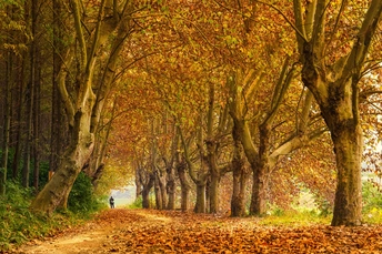 秋日小径梧桐落叶深深,把深秋的氛围感拉满。