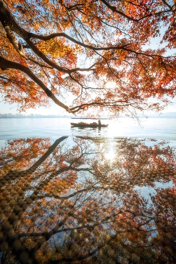西湖边上,枫树挺立,宛如秋天的守护者。它们的叶子红得如火,炽热而耀眼,在阳光下闪烁着迷人的光芒。微风吹过,枫叶轻轻摇曳,仿佛在为游客们跳着一支优美的舞蹈。站在枫树下,感受这份宁静与美好,仿佛整个世界都变得温柔起来。