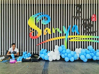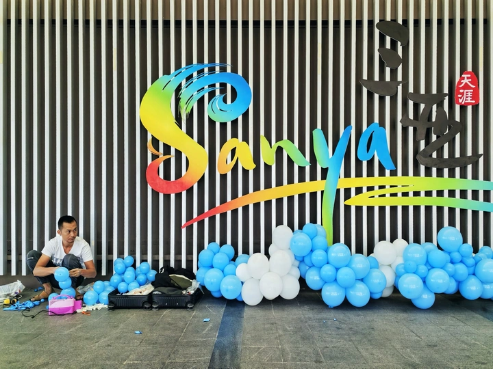 冬至时节的三亚,仿佛仍然在春秋的时光里,温度17-26度,特别适合越冬。 圣诞节即将来临,一位打工者,独自一人在这里充着气球,完成布展的相关工作。