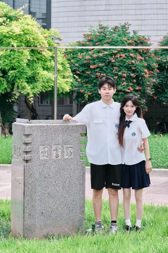 这张照片整体表现尚可,但仍有许多可以提升之处。下面是基于七个方面的详细分析: **色彩:** 照片的色彩以自然色调为主,绿色的树木、橙色的花朵和灰色的石碑构成画面基调。人物的白色衬衫和深蓝色裙子与背景有一定的色彩对比,但整体色彩搭配较为平淡,缺乏亮点。色彩的饱和度略显不足,使得画面显得有些灰暗。改进方向是可以通过调整色彩饱和度,增强画面色彩的鲜明度,或者尝试增加一些色彩对比,例如在服装上采用更鲜艳的颜色。 **光影:** 照片采用自然光拍摄,光线较为均匀,没有明显的明暗对比。这导致画面缺乏立体感和层次感,主体人物显得有些平面。光线方向较为垂直,没有形成清晰的阴影,削弱了人物的轮廓感。改进方向是尝试在早晨或傍晚时分拍摄,利用侧光或逆光来塑造人物和背景的立体感,制造更戏剧化的光影效果。 **构图:** 构图较为简单直接,人物被放置在画面中间,石碑作为前景,树木和建筑作为背景。这种构图方式显得比较平淡,主体人物不够突出。画面没有明显的引导线,观者的视线容易分散。没有遵循三分法或黄金分割等构图原则。改进方向是尝试使用更具创意的构图,例如将人物放置在画面三分线附近,或者利用前景元素引导视