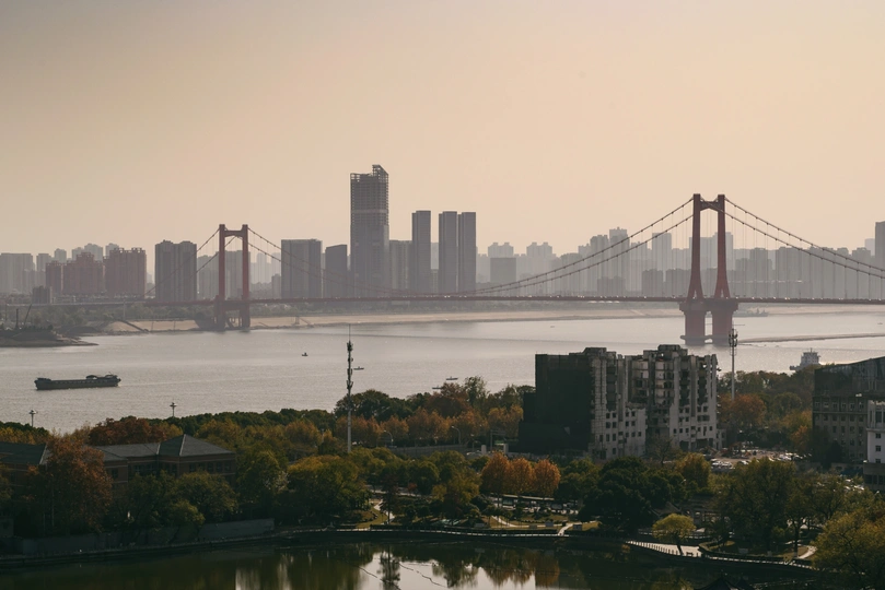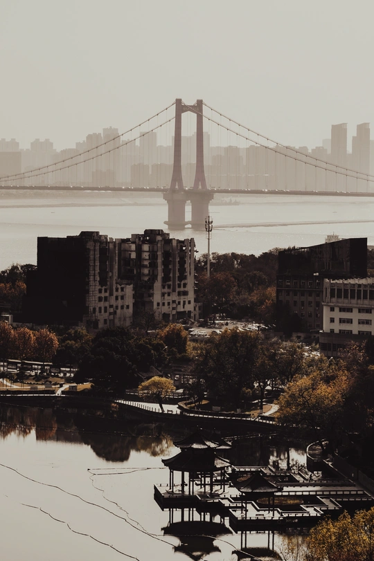 行摄之间 十里江堤风吹杨柳 怎么也梳不散的流海烟花 遮挡了月湖、青菱湖、墨水湖 群楼好奇地探出身子 跌在水汪汪的眸子里 守信的江汉关的钟声 也悠悠的柔软 藏在两条长长的水袖里 甩得很远 ————《江城》