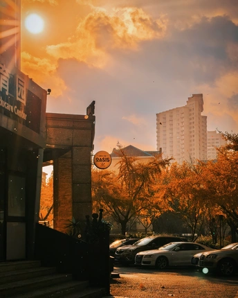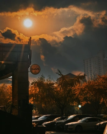 偶遇夕阳下,起狂风又开始下雨雪的极端天气,两种景色并存,天空的云和太阳共同组成看只“天眼”,“天眼”下风景也是极端的美。