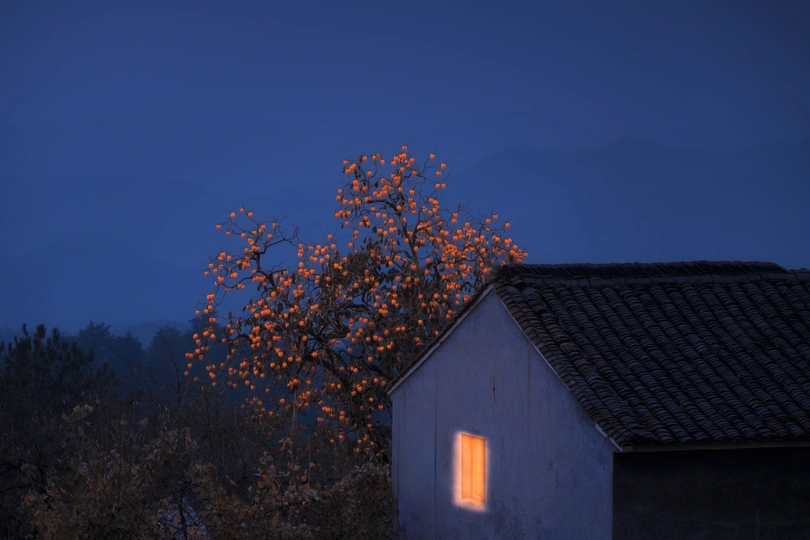 霜降红柿熟, 风急催叶枯寒露, 天高云淡, 此时节 秋韵共迎风, 山月共从容。