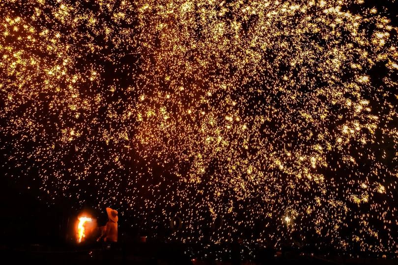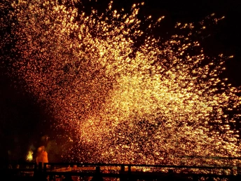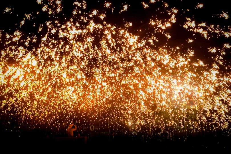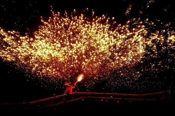 火花璀璨 #手机摄影 火是人类文明的起源,自从有了火,人类就进入了文明时代。 中国的非遗文化打铁花,既讴歌了自然的伟大,也彰显了我们的祖先在驾驭火上的智慧,天、地、人的和谐,才有了这璀璨的文明。 用手机拍摄的一组璀璨热烈的打铁花