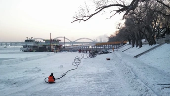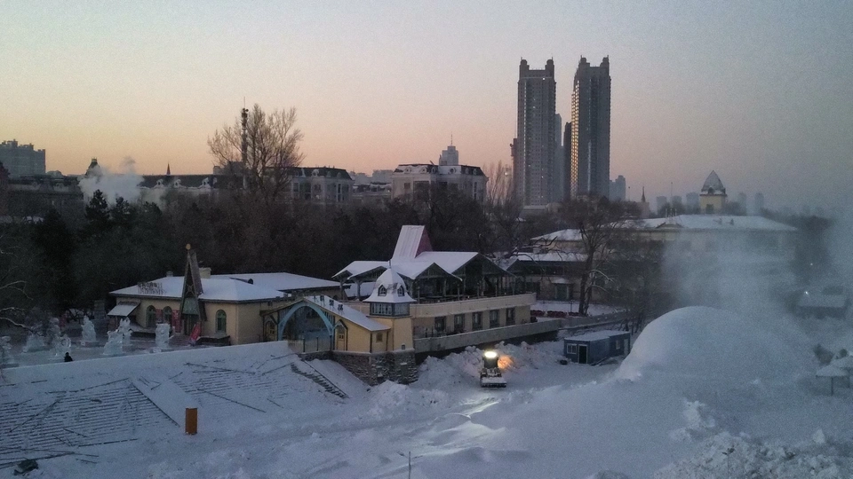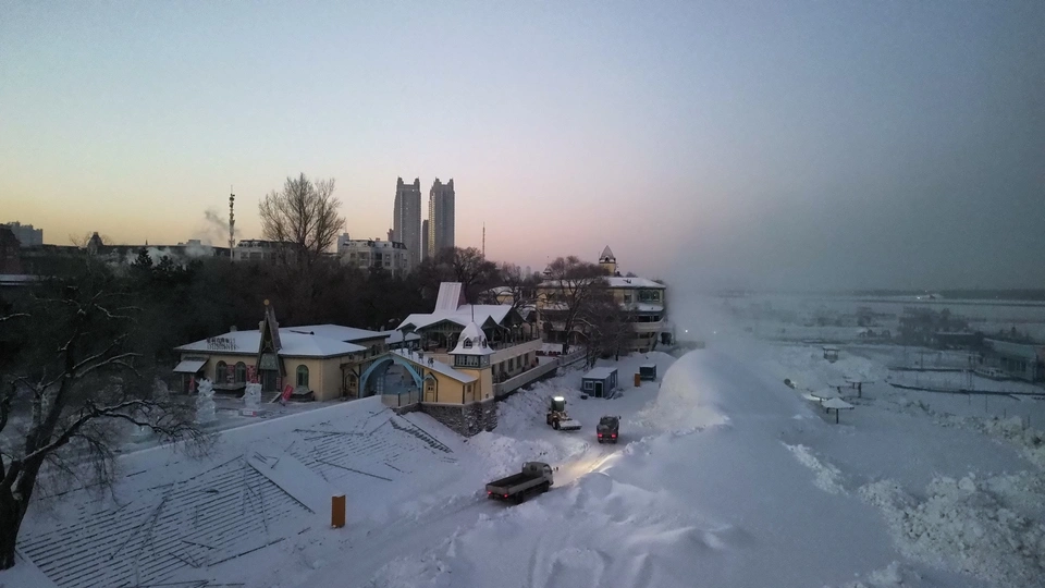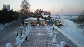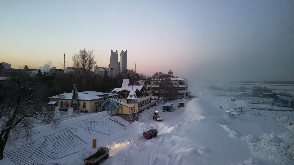 据搜狐网消息,2024年12月,哈尔滨市道里区九站附近的松花江畔正紧锣密鼓地建设冰雪乐园 。 现场有多台造雪机轰隆作响,工匠们在数米高的雪堆上雕琢雪雕作品,其中包括亚冬会吉祥物“滨滨”和“妮妮”等 。同时,工人们还在搭建百米冰滑梯,建成后游客可从江边直接滑至江面 。