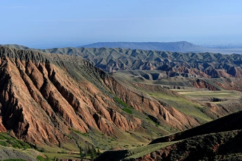 独库公路的北端,位于奎屯市境内,当天早晨天气晴朗,在独山子大峡谷入口,美丽壮观的雪山草甸峡谷,一幅壮美立体画卷,震撼人心!
