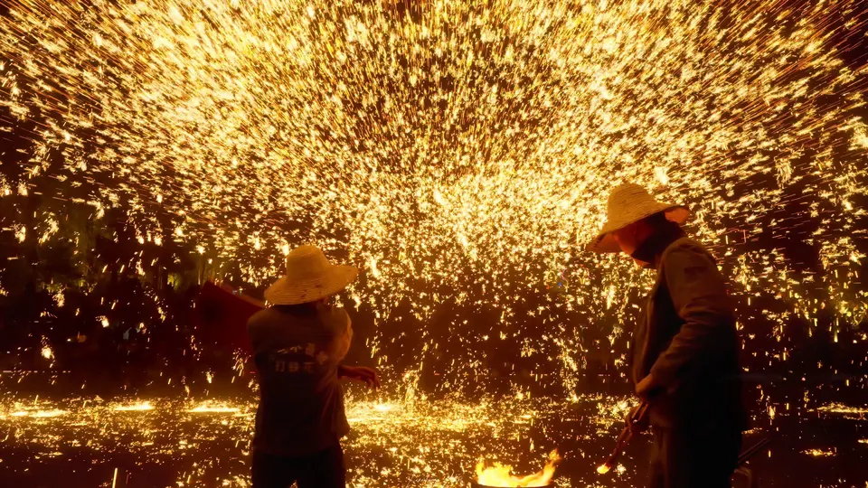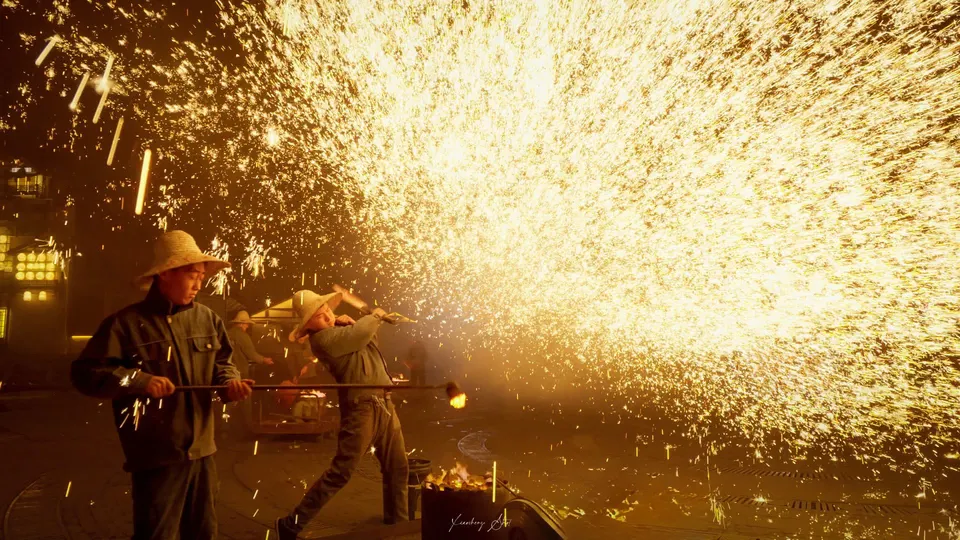 🎇火树银花落,万点星辰开。”1600多度的铁花是中国传承下来的极致浪漫,所谓“东风夜放花千树。更吹落,星如雨。”