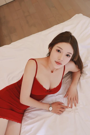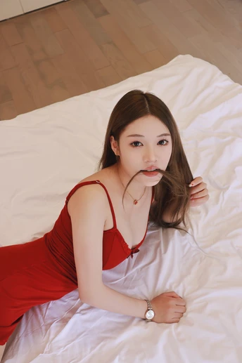 🌹在这柔软的床榻之上,我以一抹炽热的红,演绎着纯与欲的微妙交响。吊带轻垂,裙摆轻扬,每一帧都是诱惑的序章。