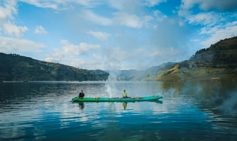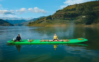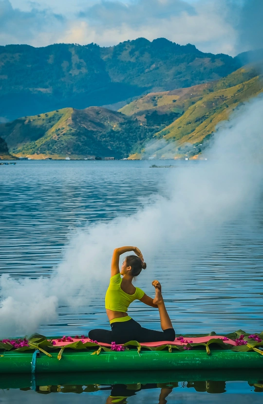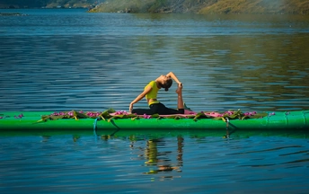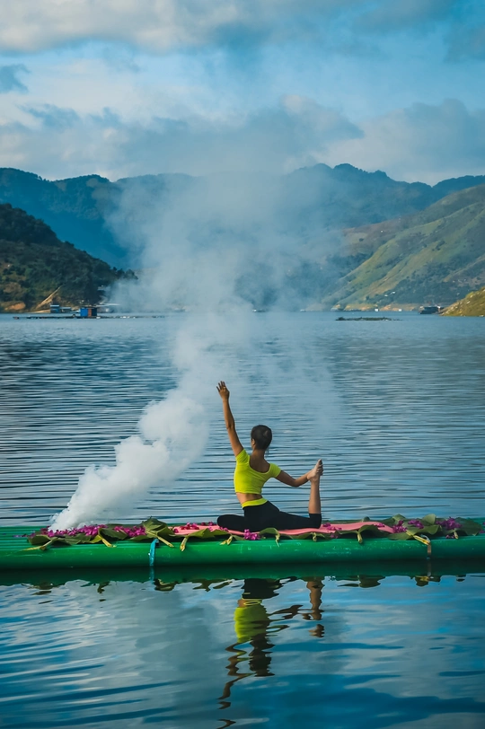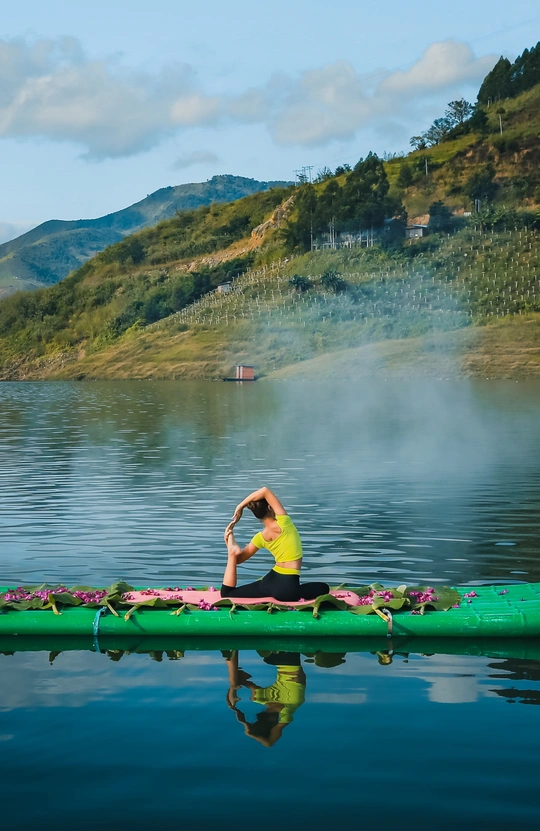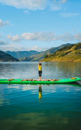 2000年1月1日,贵州省黔西南布依族苗族自治州望谟县蔗香镇,一名健身爱好者在红水河上练习瑜伽。 南盘江和北盘江在蔗香汇入红水河,这里是珠江水系主要干流生态屏障,因生态环境优美而倍受养生、健身爱好者的喜爱。