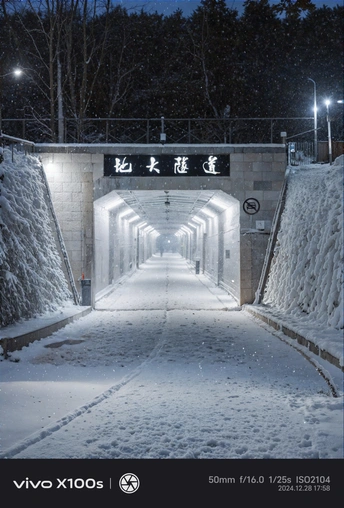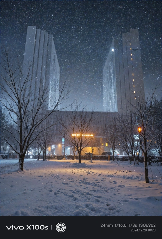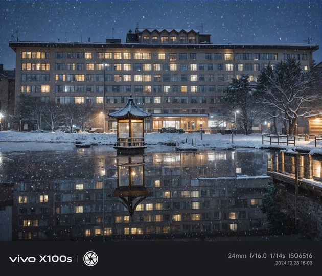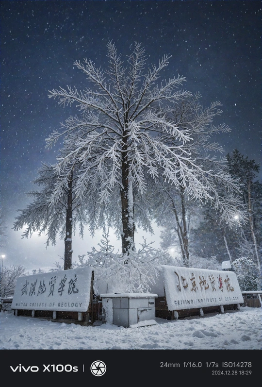 使用vivo的ai四季功能拍到了学校大雪后的样子