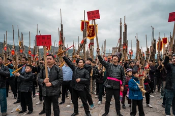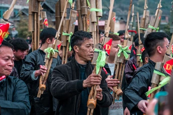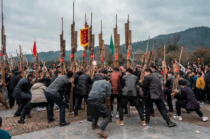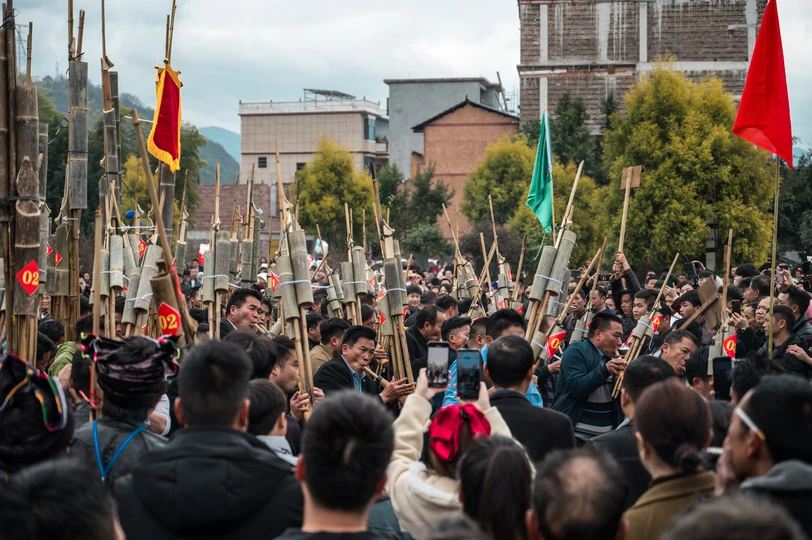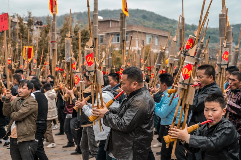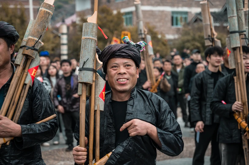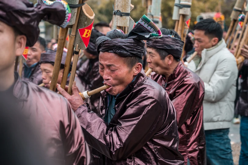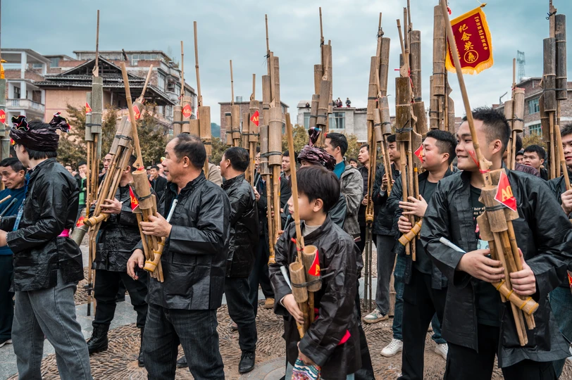 在黔东南的郎寨,一年一度的‘吃相思’活动与芦笙比赛将节日氛围推向高潮。郎寨牵头,联合周边25个侗寨,侗族儿女身着传统服饰,吹响芦笙,唱起侗歌,用独特的方式迎接新年。 活动中,不仅能感受到侗族音乐与舞蹈的动人魅力,还有充满风味的美食——‘狗血拌狗肉’,这一道地特色让人印象深刻。在这次文化交融与情感交流的庆典中,侗族传统与现代生活完美融合。 透过镜头记录下的这一刻,每一张笑脸、每一段旋律,都映射出侗族的热情与文化的绚烂。这是一场味觉、听觉与视觉的盛宴,让人久久回味。
