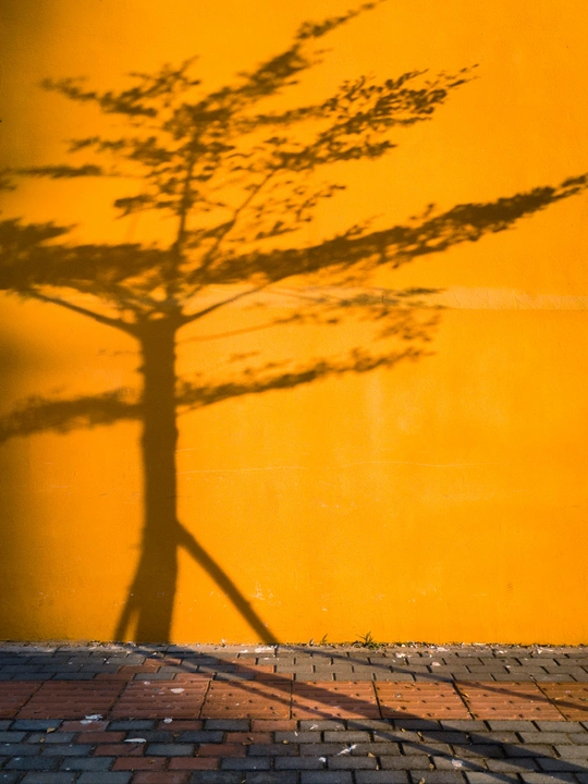 这张照片捕捉了独特的树影,整体表现良好,但在一些方面仍有提升空间。色彩方面,照片以明快的黄色墙面作为背景,这种高饱和度的单色背景非常引人注目。树影的深棕色与黄色形成对比,增强了画面的视觉冲击力。然而,这种色彩组合虽然鲜明,但略显单调,可能会显得有些平淡,可以考虑用色彩更加多样、互补的元素来增加层次感。光影方面,光线以硬光为主,树影清晰、锐利,有效地勾勒出了树的轮廓和细节。但是,这种硬光使得阴影部分显得过于暗沉,缺乏细节层次。如果在拍摄时选择更柔和的光线,或者在后期处理中适当提亮阴影部分,或许能够更好地平衡光影效果,增加照片的通透感。构图方面,画面采用了中心对称式构图,树影位于画面中心,使得视觉焦点明确。然而,这种构图略显保守,可以尝试使用三分法或黄金分割法来增强画面的空间感和视觉引导。此外,画面下方的砖石地面略显杂乱,对整体构图产生了一定的干扰,可以考虑简化或者更加突出主体的同时弱化地面部分。后期处理方面,从照片的整体效果来看,没有明显的过度修饰,色调和对比度调整得比较自然。但仍有提升空间,例如可以稍微调整一下色温,使其更加温暖,或者提高一点整体对比度,使画面更具表现力。