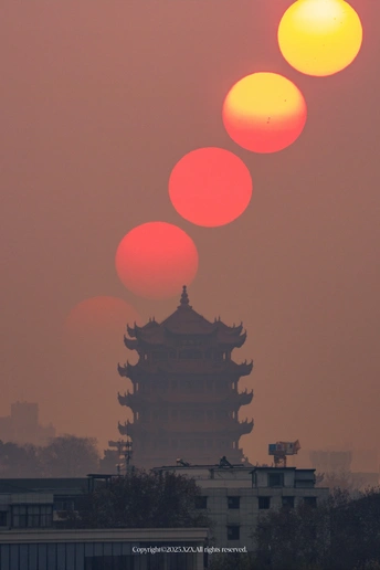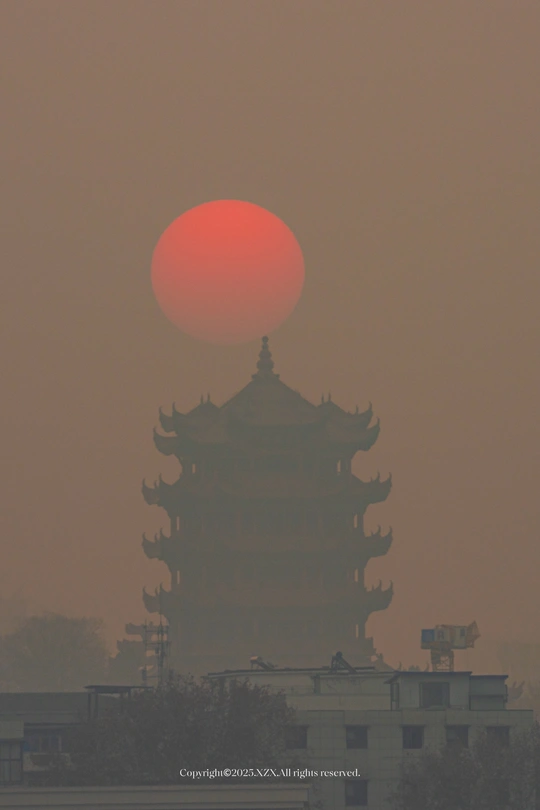 武汉的雾霾没挡住黄鹤楼后的🌞