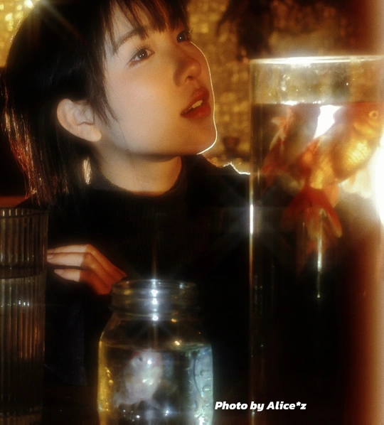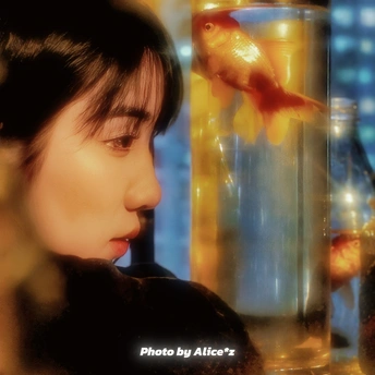 出鏡 小橙 組織 @winson神少爷 攝後 me 这张照片的构图独特,将人脸和金鱼置于画面两侧,创造出一种对比感和视觉张力。然而,在色彩、光影和后期处理方面,存在一些可以改进的地方。 **色彩:** 画面整体呈现暖色调,人脸和金鱼都带有明显的黄色调,可能源于环境光或后期处理。虽然统一了基调,但缺乏色彩层次,显得有些单调。金鱼的橙红色在暖黄背景下不够突出,与人脸的肤色过于接近,导致视觉区分度不高。建议在后期调整时,适当减弱黄色调,并增强金鱼的色彩饱和度,使其更加鲜明。 **光影:** 光线较为柔和,但方向性不明显,缺乏明确的明暗对比,导致画面层次感不强。人脸和金鱼均处于相对均匀的光照下,缺乏阴影的塑造,显得较为平淡。可以尝试运用侧光或顶光等具有方向性的光线,创造更具戏剧性的光影效果,突出主体轮廓和质感。 **构图:** 照片采用了分割式构图,人物和金鱼各占一半画面,这在一定程度上造成了画面割裂感。虽然这种构图方式具有一定的创意,但主体不够突出,视觉中心不明确。可以尝试运用三分法或黄金分割,重新安排人物和金鱼的位置,突出其中一个作为视觉中心,并使画面元素更加协调。