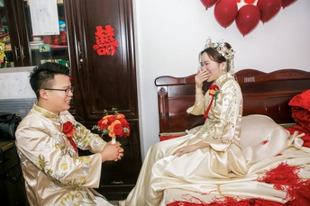 婚礼跟拍,致力于记录每个幸福的瞬间 从新娘的紧张与期待,到新郎的深情与坚定,再到亲友们的欢笑与泪水,每一个细节都值得被记录。 通过对光线的巧妙运用,可以突出人物的轮 廓,增强画面的层次感,让每一-张照 片都充满艺术的美感。新娘手中的捧花、新郎袖口的纽扣、交换戒指时的手指,这些细微之处往往能传递出最深的情感。通过对细节的关注,我们可以让照片更具故事性和感染力。