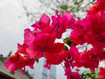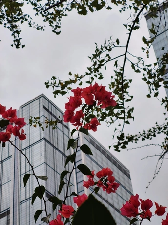 成都的冬天,街头上三角梅绽放,艳丽多姿,火红而又热烈。看到这美丽的花朵,感觉冬天也不太冷了。
