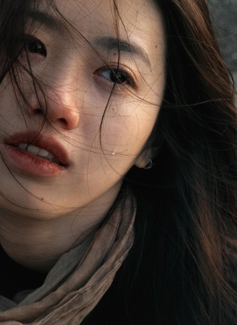 在呼和浩特大草原迎着风拍了一张照片 正好抓住了流泪的瞬间