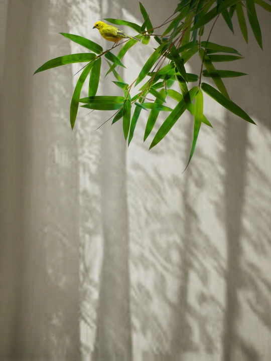 鸟戏竹林细叶间,叽叽喳喳扰人眠。