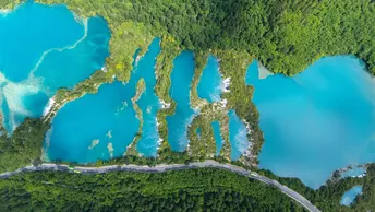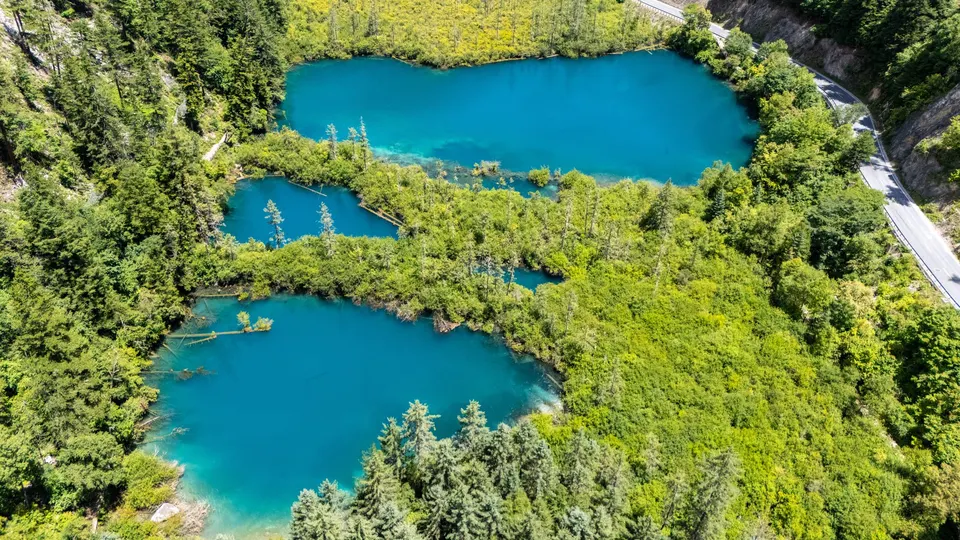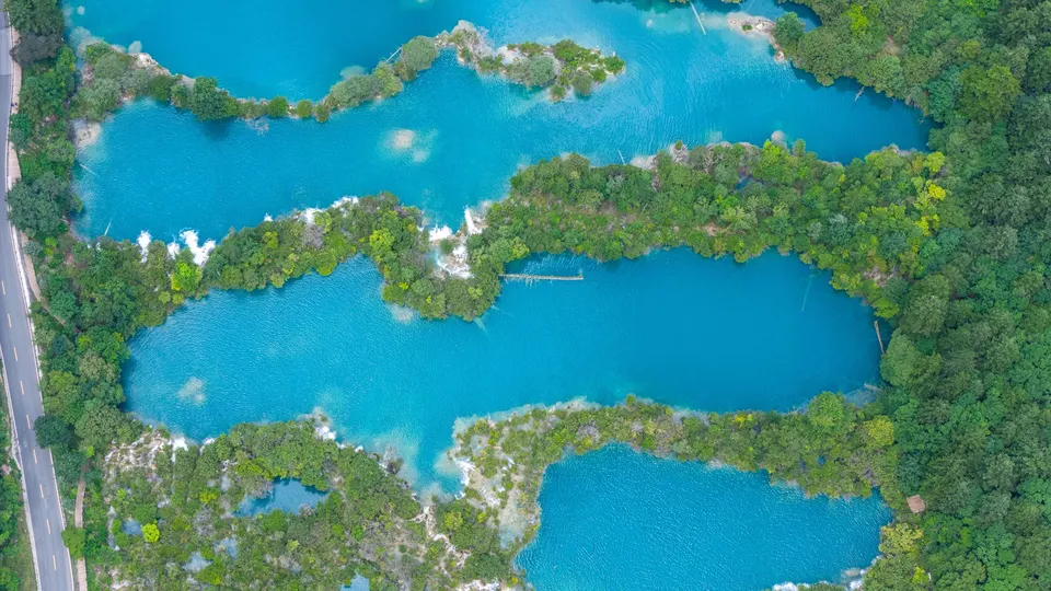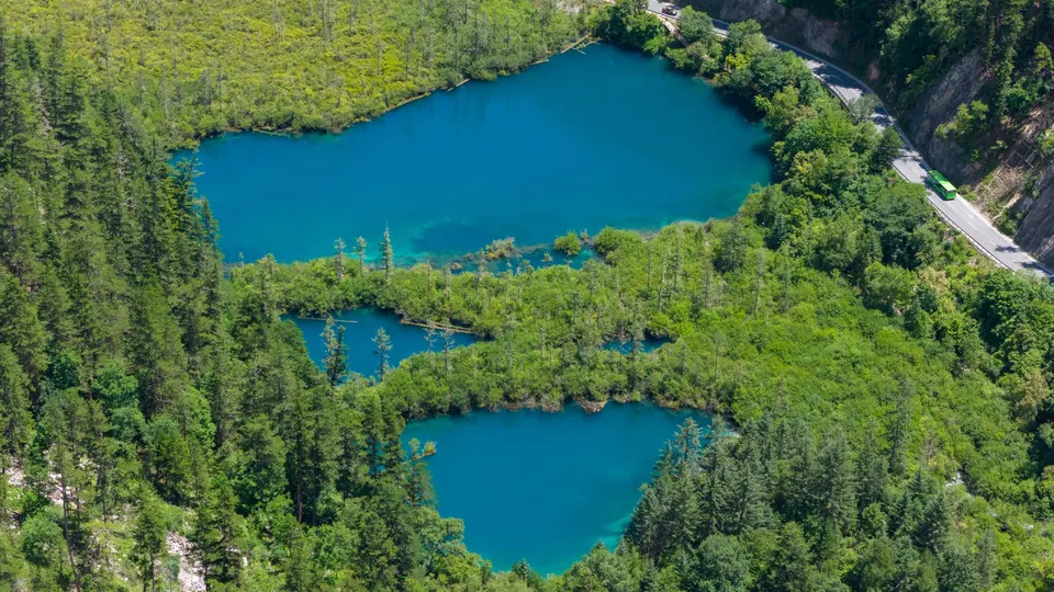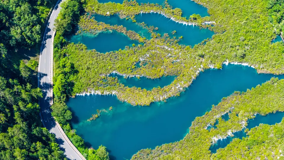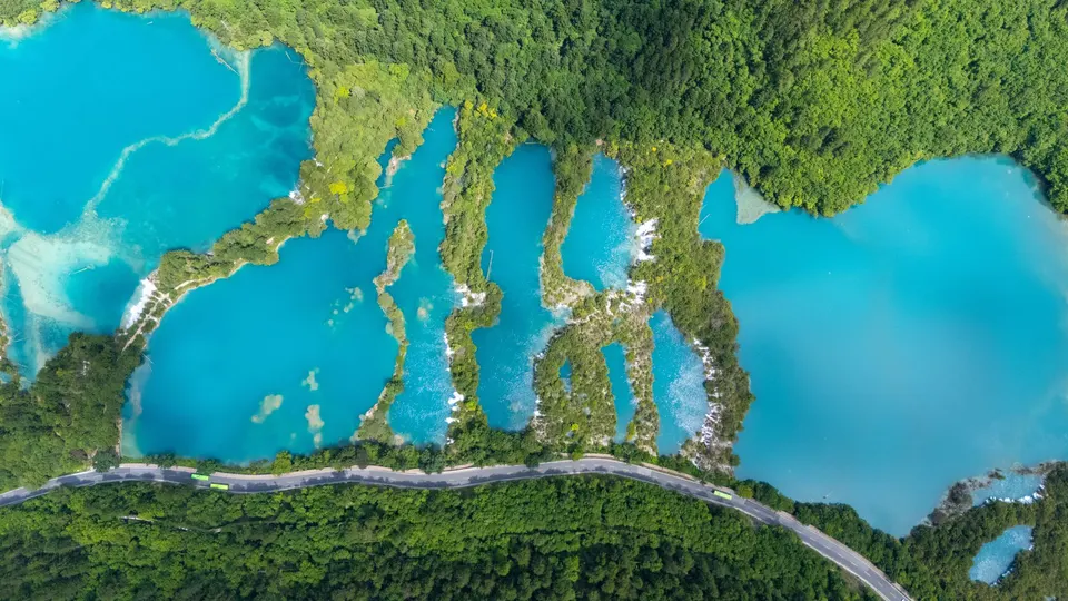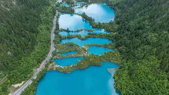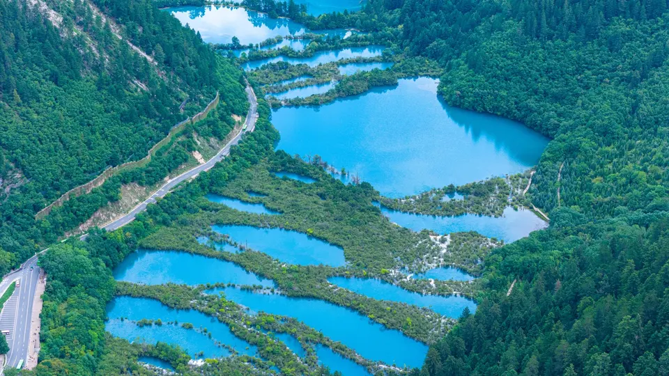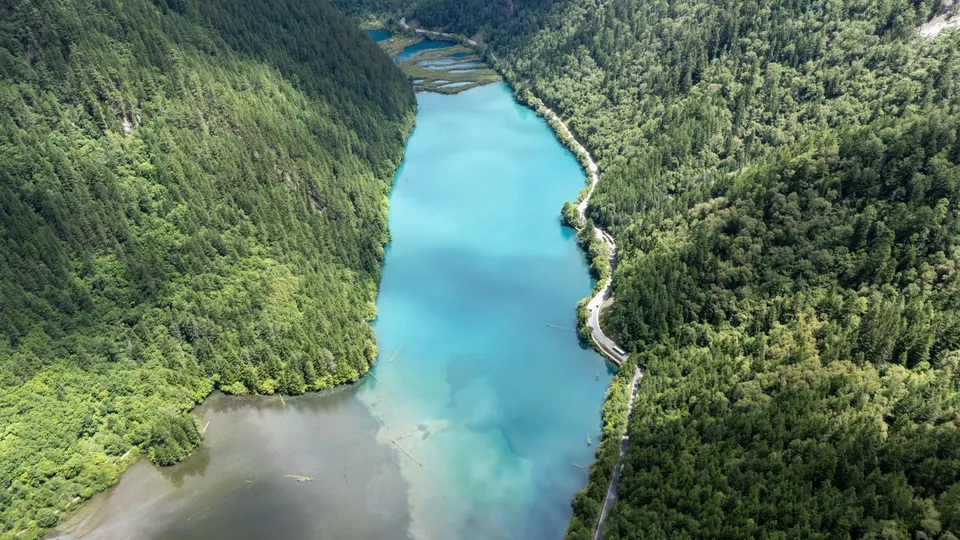 珍贵的九寨沟航拍图,九寨沟,位于四川省阿坝藏族羌族自治州九寨沟县漳扎镇境内,九寨沟以水成名,在07年正式批准为国家五A级旅游景区,九寨归来不看水!