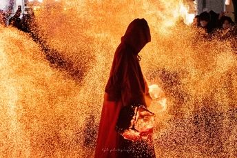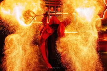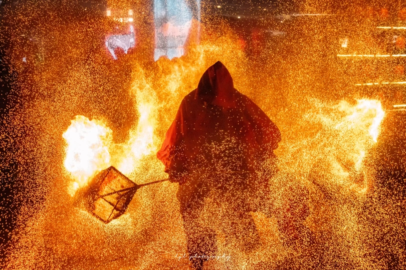 火壶表演源远流长,其起源可追溯至古代幻术,承载着深厚的民间传统。在河南开封等地,火壶表演的历史甚至可以追溯到北宋时期的祭祀幻术。 火壶表演的最大特点就是将火焰与艺术完美结合。表演者手持燃烧的火壶,在夜空中划出一道道绚丽的弧线,火光四溅,如梦如幻。在夜空中,燃烧的火壶和四溅的火花形成了一幅幅壮丽的画卷,给人带来极大的视觉冲击和心灵震撼。